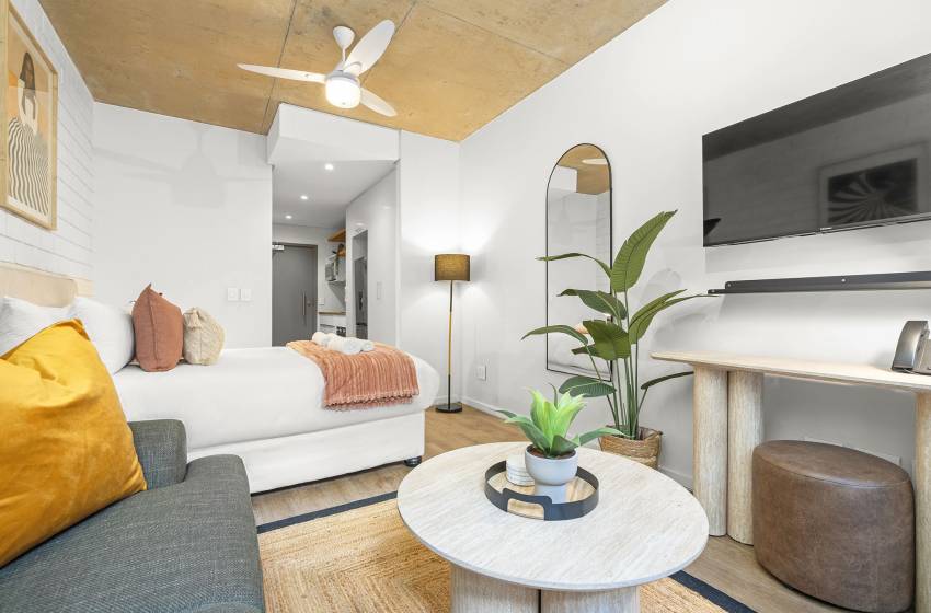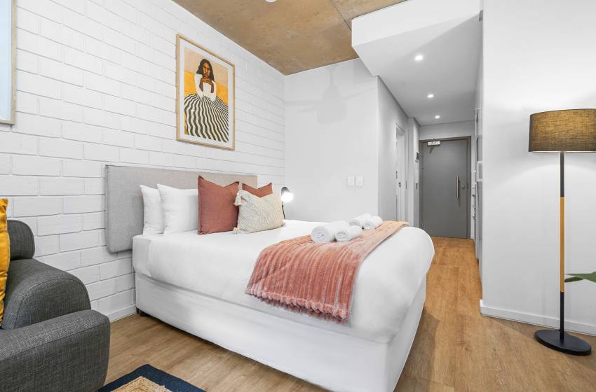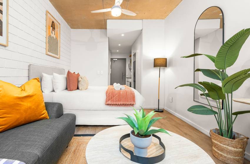 Located on the 4th floor at Wex1, just a 5-minute walk away, guests can enjoy access to a range of on-site facilities, including a gym, swimming pool, outdoor deck, and pool bar. The building also offers ground-floor restaurants and convenient retail stores, providing added comfort and convenience right at your doorstep. Beyond the on-site amenities, guests are perfectly positioned to explore the city and all it has to offer.