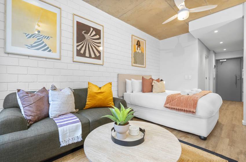 Located in the hip and happening suburb of Woodstock in the beautiful Mother City of Cape Town, you will find this modern studio apartment at Wex2, comfortably accommodating up to two guests.