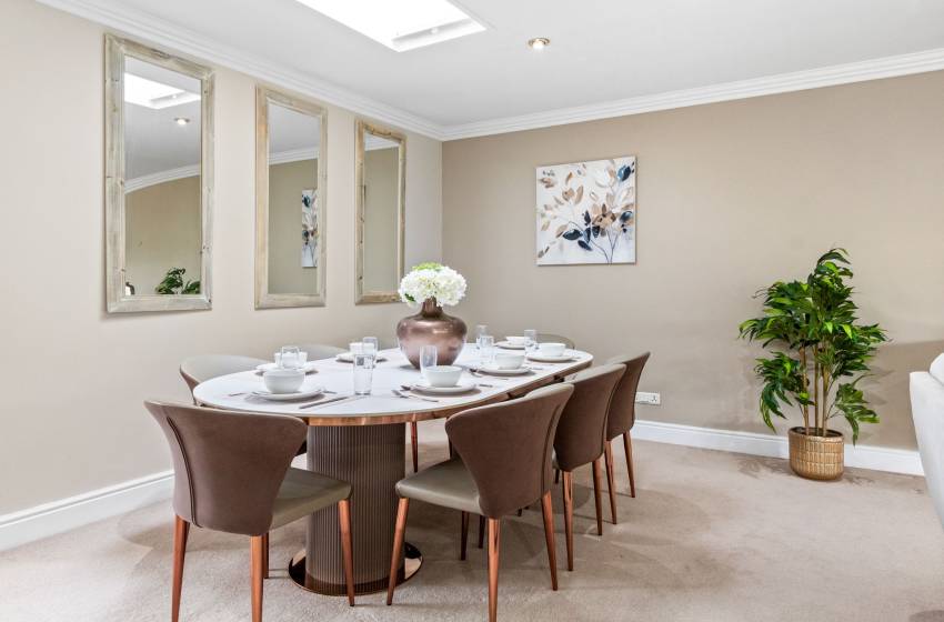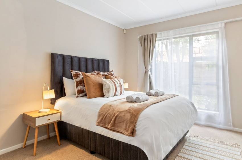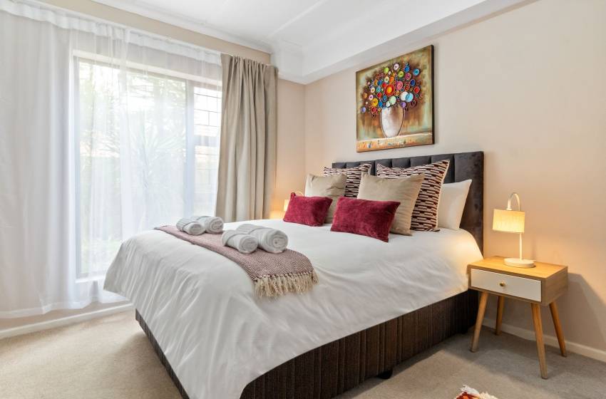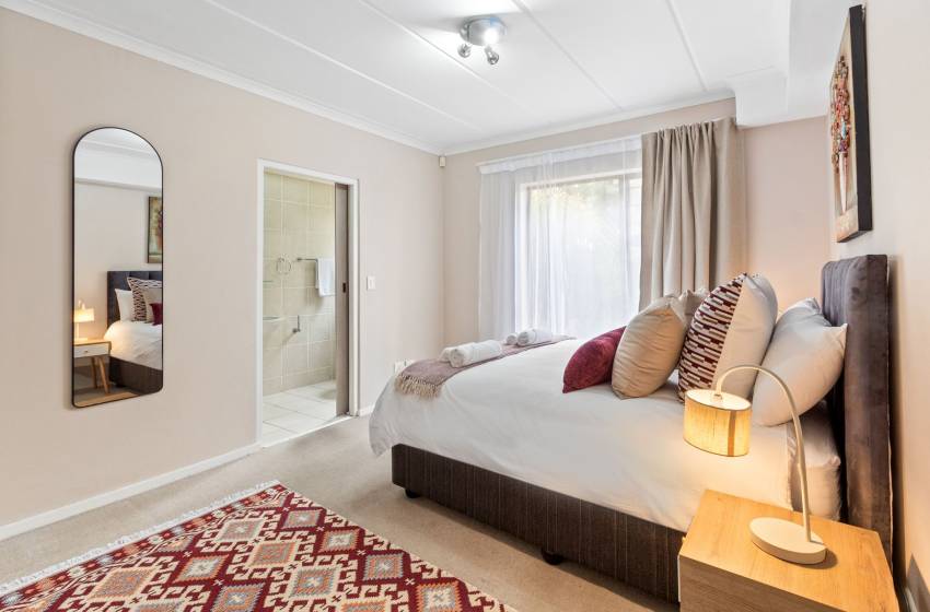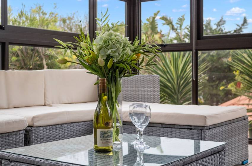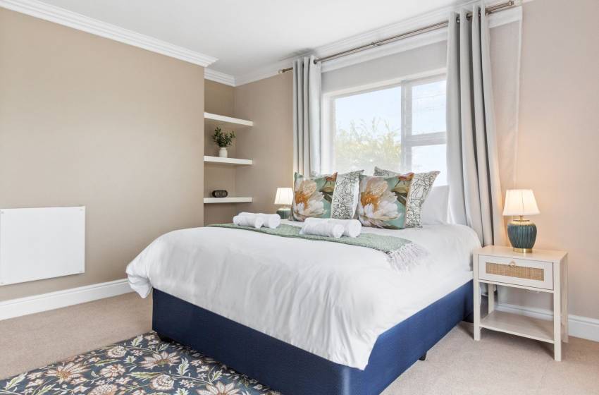 The home boasts six beautifully appointed bedrooms, thoughtfully designed for comfort and versatility. The main bedroom features a luxurious king-size bed and opens directly onto a sun-drenched sunroom—a serene retreat with expansive windows that frame sweeping panoramic views of the surrounding landscape, seamlessly blending indoor comfort with natural beauty. It also enjoys access to a spacious private garden, enhancing the sense of tranquillity. Three additional bedrooms are elegantly furnished with queen-size beds, while the fifth offers a cozy three-quarter bed and the sixth, a comfortable double bed perfect for accommodating families or groups, all of which conveniently have access to a shared bathroom to enhance convenience and accessibility for guests. Two of these bedrooms are located in separate, fully self-contained units with private entrances. Each unit includes its own kitchen, washing machine, lounge area with a smart TV, and a private en-suite bathroom providing guests with added comfort, independence, and privacy.