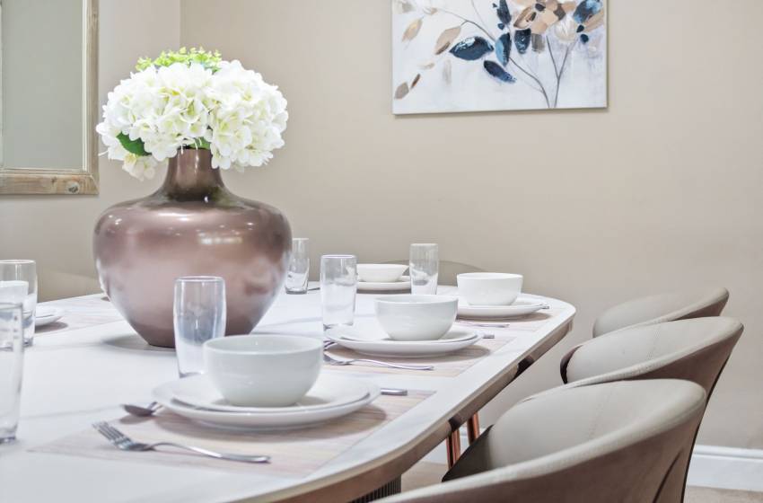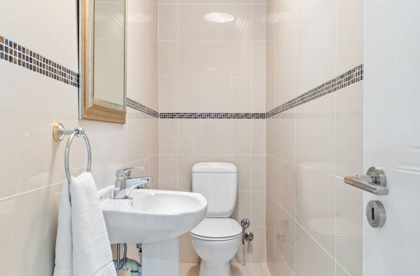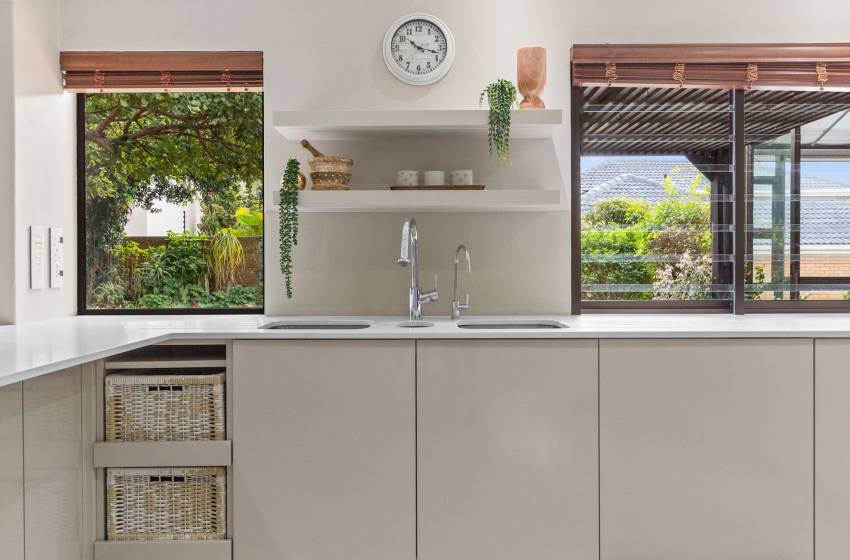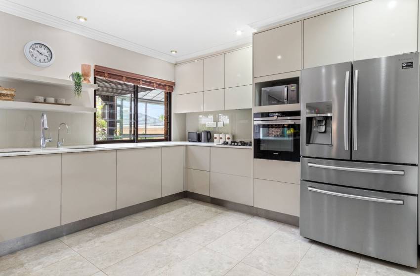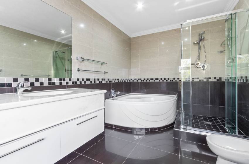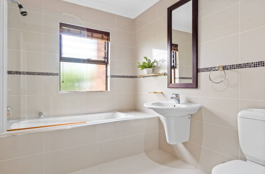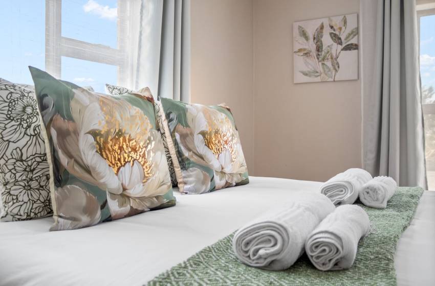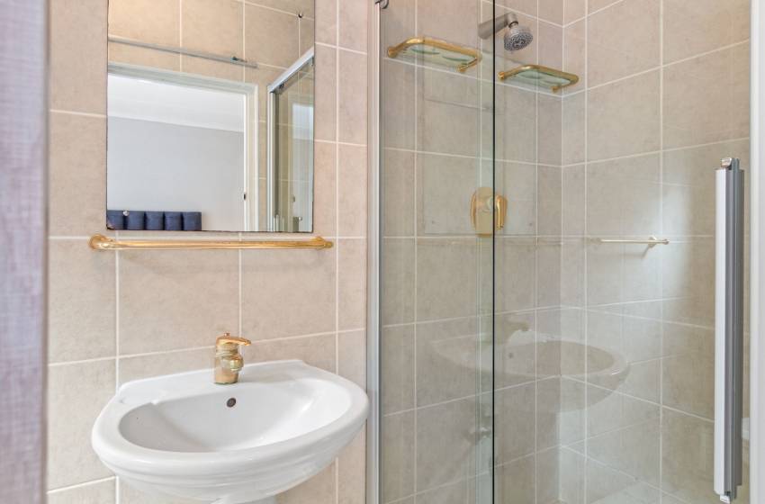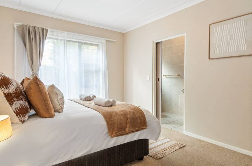The home features four full bathrooms and one guest bathroom, all thoughtfully designed to ensure comfort and convenience throughout your stay. The guest bathroom, equipped with a toilet and washbasin, is ideal for quick, shared access. The main full bathroom offers a spacious shower, a relaxing bathtub, double vanities, and a toilet perfect for unwinding after a day of exploring. The second full bathroom includes a combined shower-over-bath, a single vanity, and a toilet. The remaining two bathrooms are en-suite and located within the private, self-contained units on the property. Each is tastefully appointed with a shower, toilet, and washbasin. High-quality linen and towels are provided for your comfort.