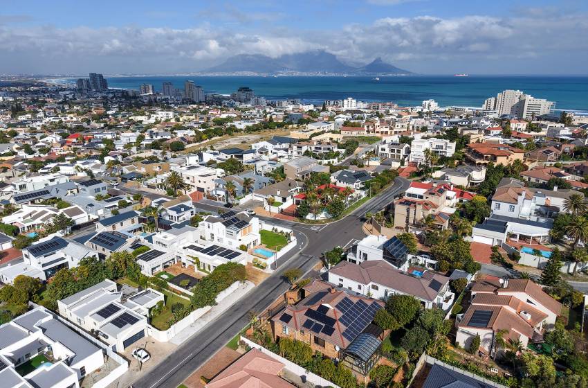 In the cosy seaside suburb of Bloubergstrand, you will find this spacious six-bedroom home, perfect for a family getaway or friends travelling in a group.