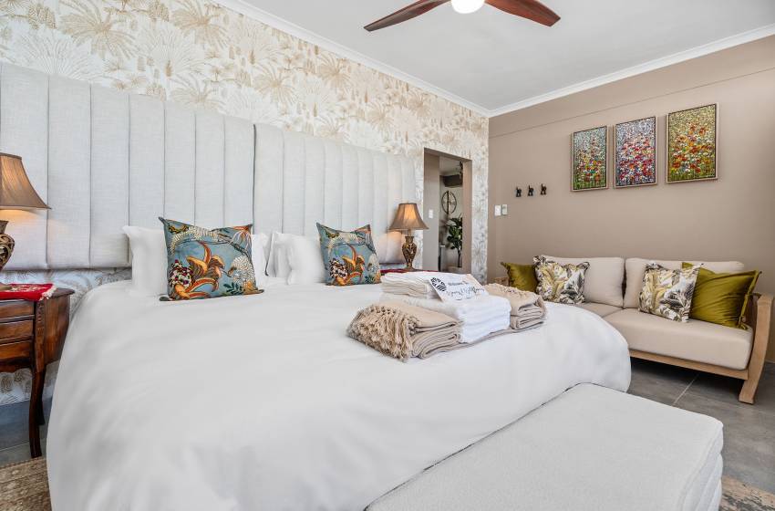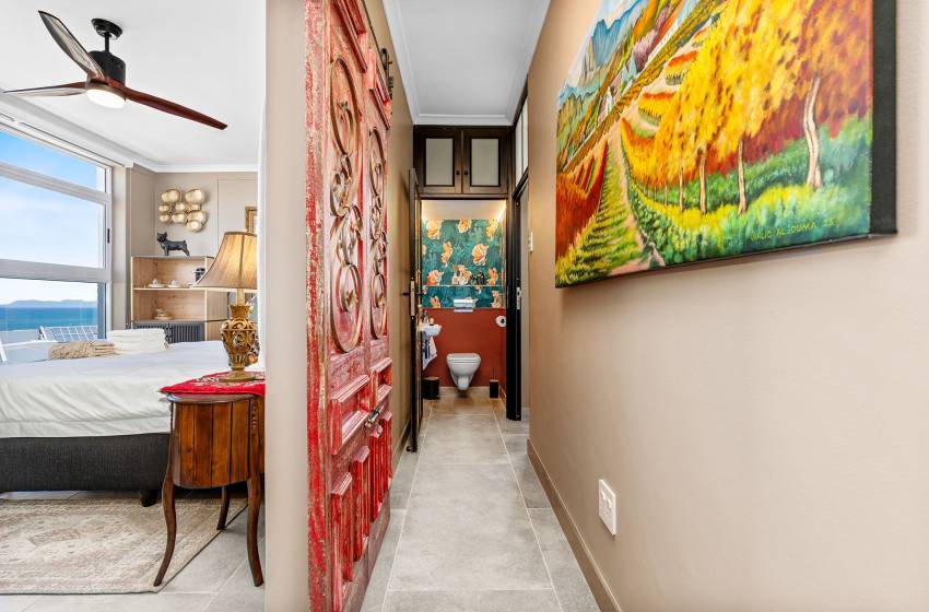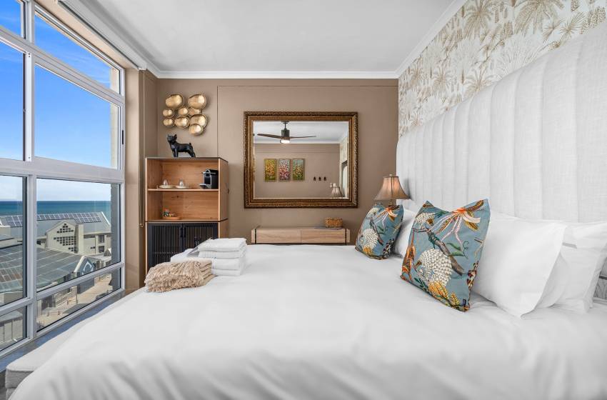 Waves & Wildflowers is located in the stunning coastal suburb known as Strand in Cape Town. You’ll wake up to breathtaking ocean views every day at this one-of-a-kind beachfront apartment. It’s perfect for sea lovers, wanting to enjoy the panoramic vistas of the beach, False Bay, and surrounding mountains from the comfort of their living space.