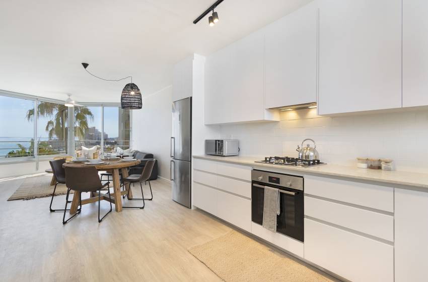 This modern apartment provides all that you need for an unforgettable stay, with luxury and comfort combined. The open plan design creates a spacious living area, with large windows allowing an abundance of natural light in and spectacular ocean views. The newly renovated and fully equipped kitchen includes a dishwasher for your convenience. The dining area provides an intimate setting and comfortably seats four people. The lounge area is cozy with a comfortable couch to relax and enjoy your favourite TV shows/movies.